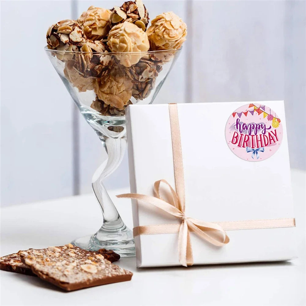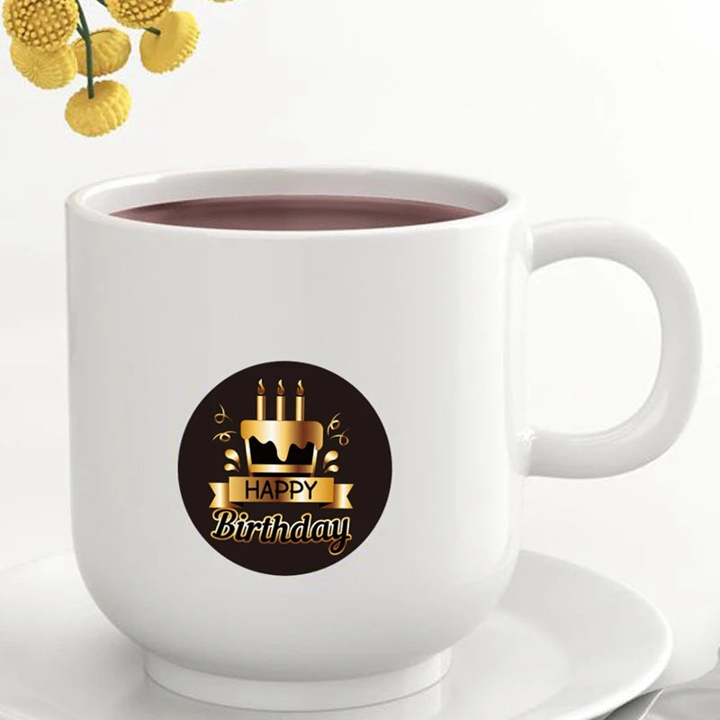 Haz que cada cumpleaños sea inolvidable con nuestras pegatinas redondas “Happy Birthday”.