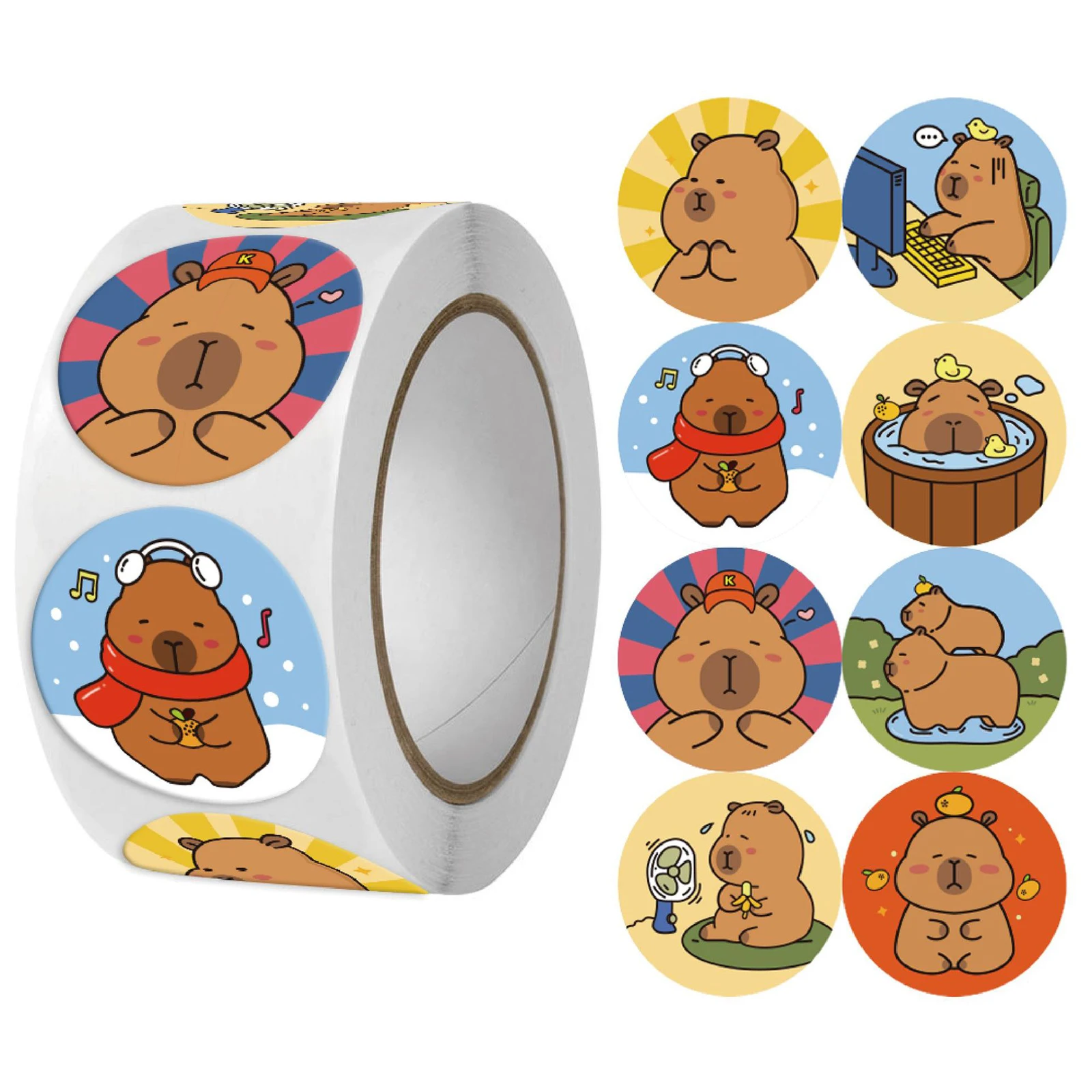 ¡Añade un toque divertido y único a tus regalos y manualidades con nuestras pegatinas redondas de capibaras!