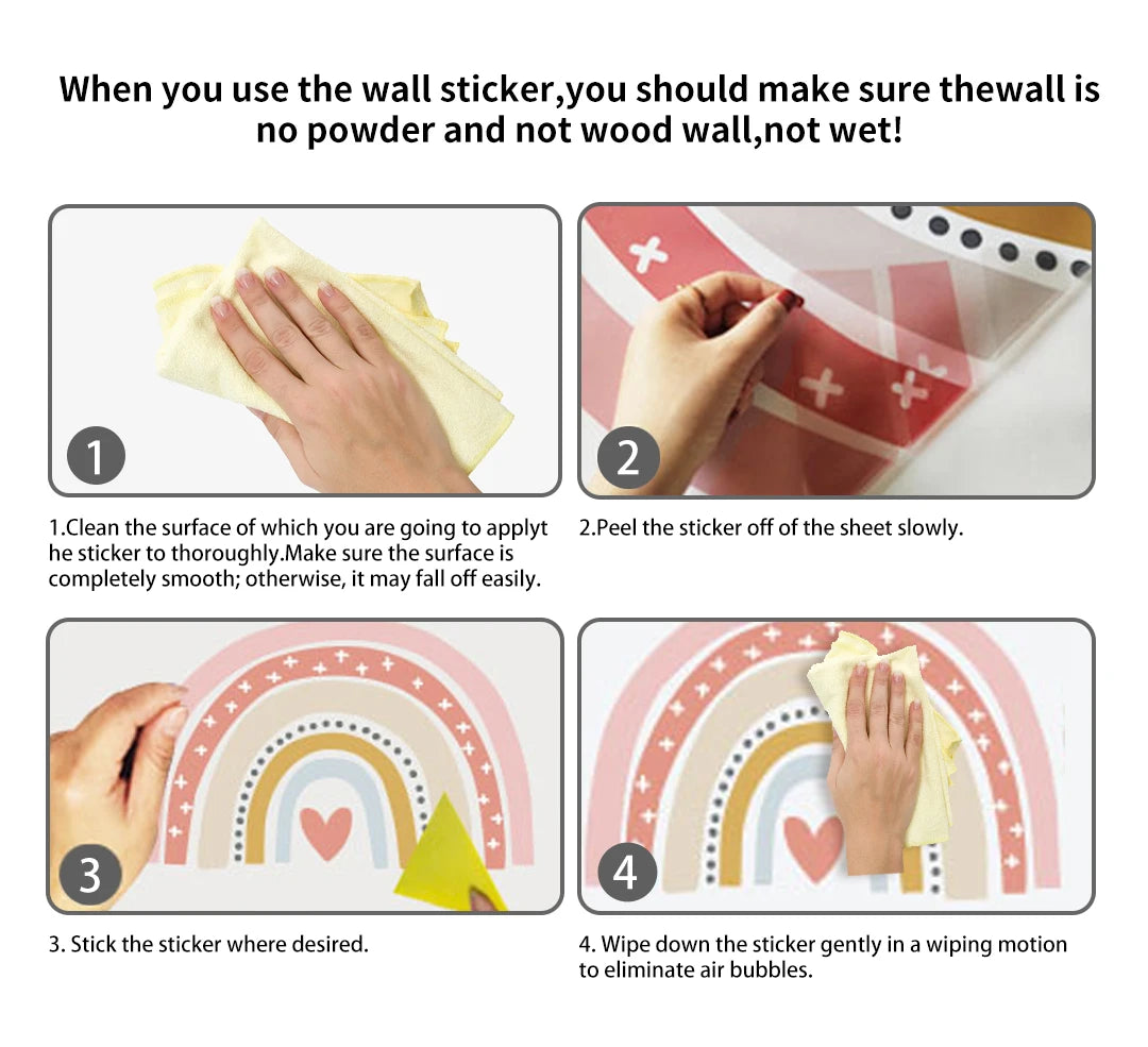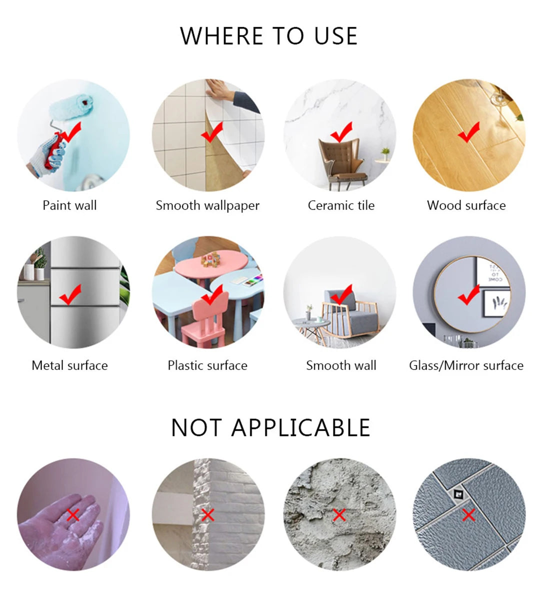 -Por favor, asegúrese de que la superficie sea lisa y limpia, no sucia y áspera, de lo contrario la pegatina puede caerse.