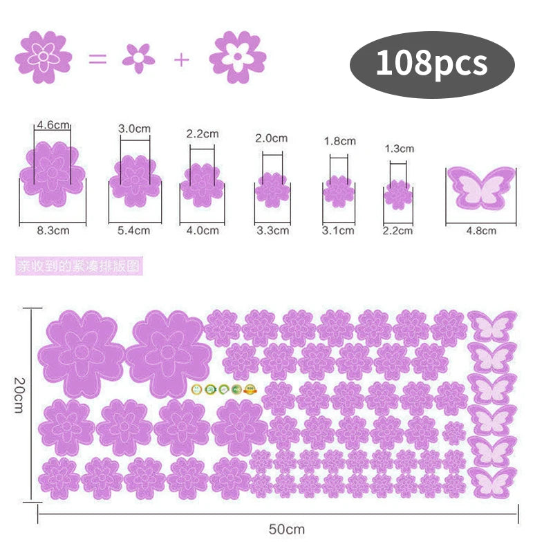 108 Calcomanías de pared de flores de bricolaje para habitaciones de niños