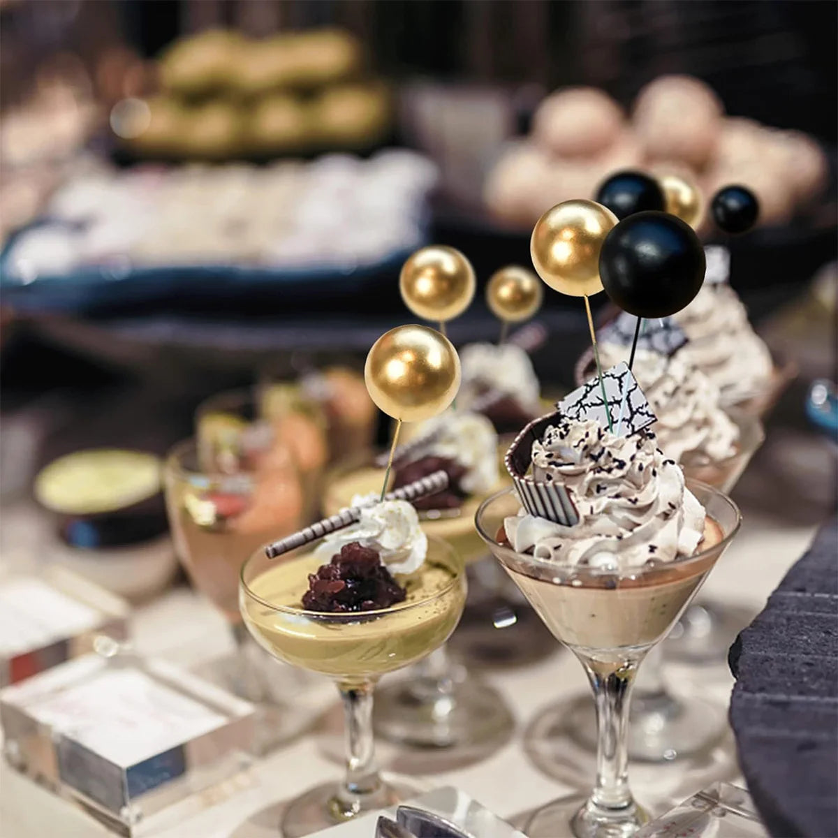 - 🧁 Materiales seguros: Las perlas están hechas de espuma con varilla de alambre metálico, y el topper es de acrílico resistente. Todo apto para decorar postres (¡pero no comestible!).