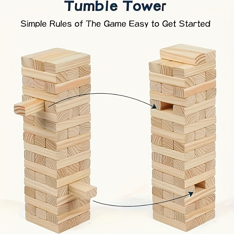 El Juego tipo Jenga de 54 piezas es el clásico que nunca pasa de moda. Fabricado en pino resistente, combina estrategia, risas y tensión en cada turno. Perfecto para noches de juegos. Este set no solo entretiene, también decora tu espacio con un toque rústico y divertido.