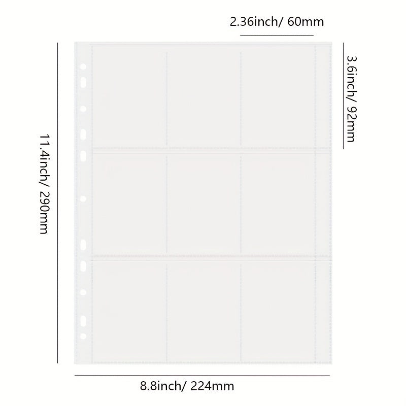 Organiza y protege tus photocards y trading cards con estas páginas de 9 bolsillos (11 agujeros), disponibles en packs de 10 o 30 unidades. Perfectas para álbumes de Kpop.